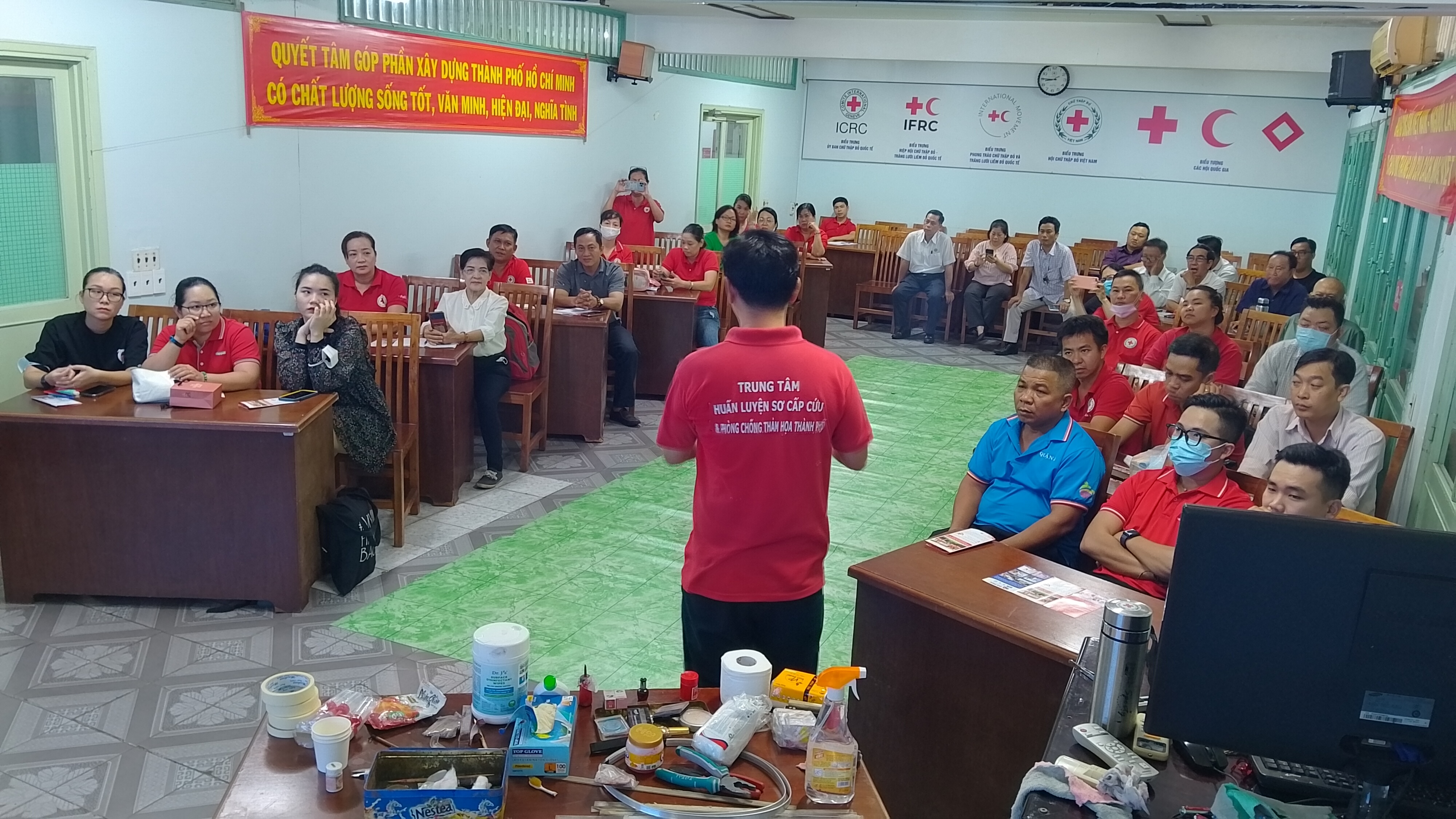 Ông Trần Văn Tuấn, Phó Chủ tịch Hội Chữ thập đỏ Tp Hồ Chí Minh, kiêm Giám đốc Trung tâm sơ cấp cứu cho biết: Đây là lần đầu tiên Hội Chữ thập đỏ Thành phố tổ chức tập huấn kỹ năng hóa trang vết thương nạn nhân. Quan trọng hơn là nâng cao năng lực của Hướng dẫn viên, Tập huấn viên sơ cấp cứu trong việc tổ chức tập huấn, hội thi, hội thao giúp mọi người khi dự tập huấn và thực hành sơ cấp cứu gắn với thực tiễn cuộc sống, tự tin sơ cấp cấp người bị nạn kịp thời.
