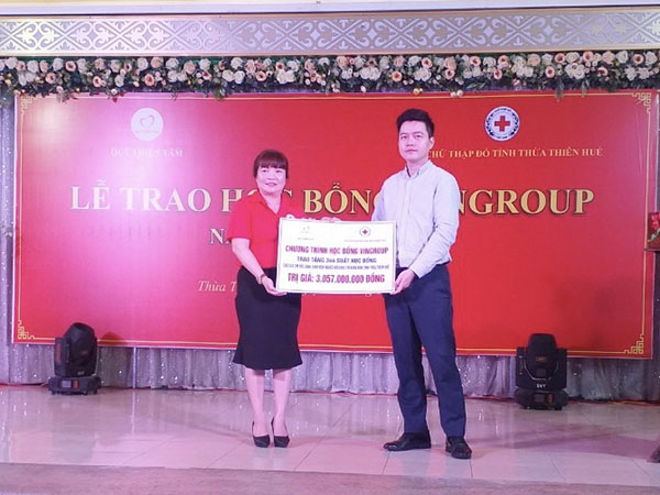 Với mục tiêu nhằm giúp đỡ những học sinh, sinh viên học giỏi, hiếu học vượt qua khó khăn thử thách trong cuộc sống, từ đó phát triển bản thân để có một tương lai rộng mở hơn, giúp đỡ cho gia đình và cống hiến cho đất nước. Từ năm 2020 đến nay, Quỹ Thiện Tâm – Tập đoàn Vingruop đã phối hợp với Hội Chữ thập đỏ tỉnh Thừa Thiên Huế triển khai Chương trình “Học bổng Vingruop” tại tỉnh Thừa Thiên Huế. Qua đó đã kịp thời hỗ trợ hàng trăm em học sinh từ cấp Tiểu học đến Đại học với tổng số tiền hỗ trợ hơn 3 tỷ đồng/năm học. Các em được nhận học bổng là các em có hoàn cảnh gia đình khó khăn, kết quả học lực đạt Khá – Giỏi và có ý chí vươn lên.