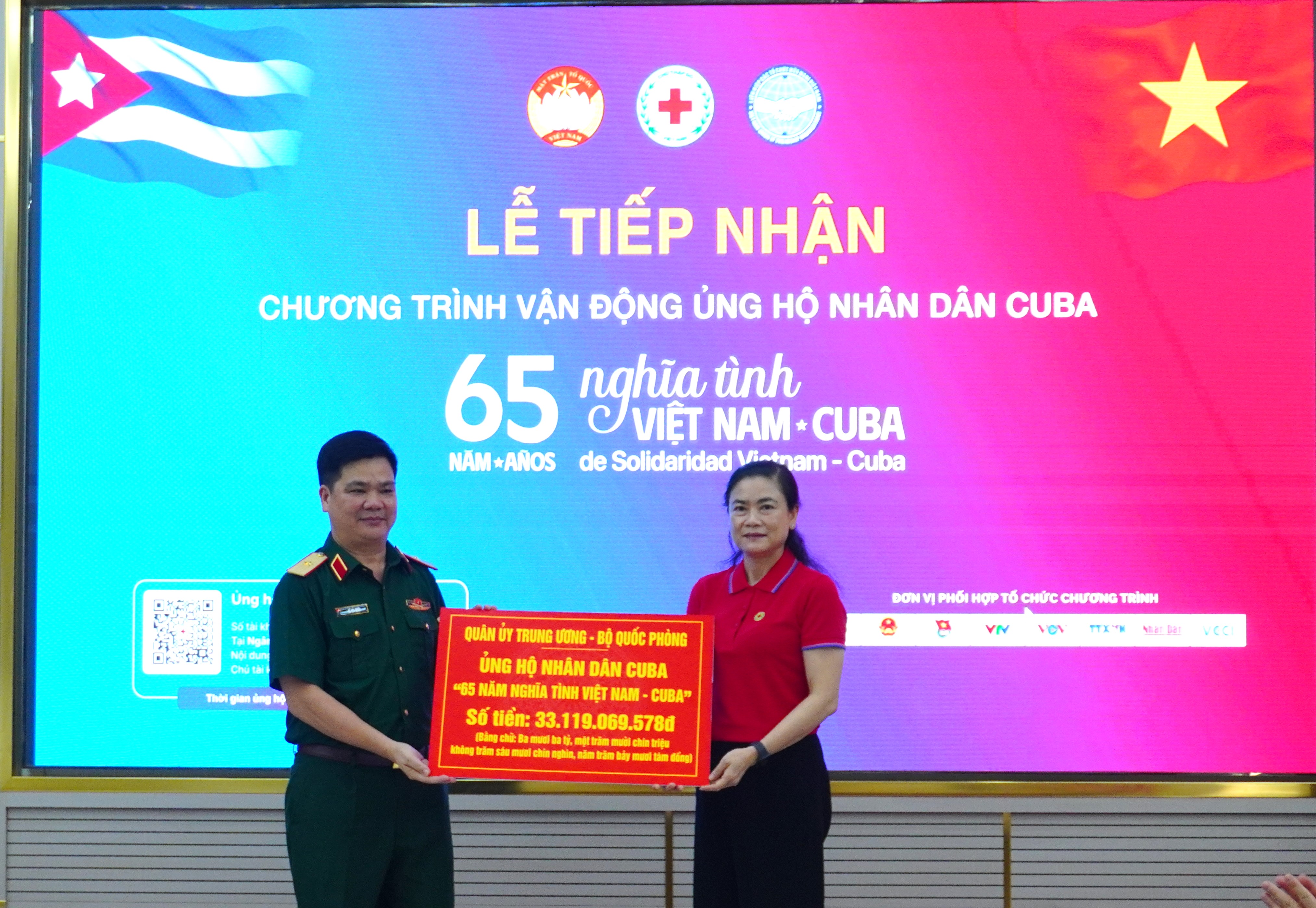 Phát biểu tại buổi lễ Thiếu tướng Bế Hải Triều cho biết: Ngay sau khi Hội Chữ thập đỏ phối hợp với các đơn vị tổ chức Lễ phát động Chương trình ủng hộ nhân dân Cuba. Bộ Quốc phòng đã phát động chương trình hướng ứng trong toàn quân với sự tham gia ủng hộ của rất nhiều cán bộ, chiến sĩ. Hôm nay Quân ủy Trung ương, Bộ Quốc phòng trao số tiền trên đóng góp vào chương trình do Hội Chữ thập đỏ phối hợp với các đơn vị phát động gửi cho nhân dân Cuba.