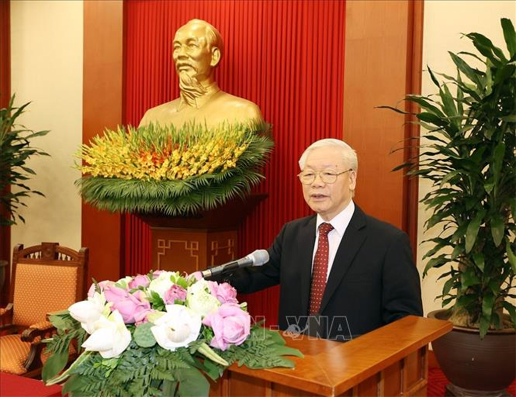 Tổng Bí thư Nguyễn Phú Trọng phát biểu tại buổi gặp mặt. Ảnh: Trí Dũng – TTXVN