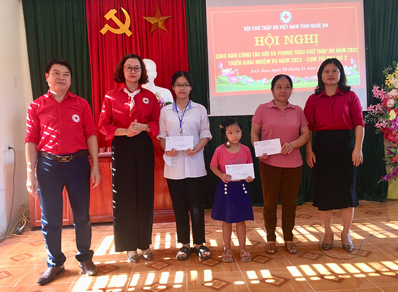 Trước khi diễn ra Hội nghị giao ban, Hội Chữ thập đỏ trong cụm đã tặng quà cho 3 hoàn cảnh đặc biệt khó khăn trên địa bàn huyện Anh Sơn. Đại biểu tại Hội nghị cũng hưởng ứng ủng hộ chiến dịch nhắn tin theo cú pháp TET gửi 1409 đóng góp ủng hộ người nghèo đón Tết do Trung ương Hội Chữ thập đỏ phát động.