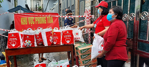 Tại các điểm trao quà, lãnh đạo Hội Chữ thập đỏ Thành phố gửi lời thăm hỏi sức khỏe, động viên các lực lượng tuyến đầu, các hộ gia đình vượt qua khó khăn, phòng chống dịch đồng thời trao tặng 200 “Túi hàng gia đình Chữ thập đỏ” mỗi phần 500.000 đồng, 5 tấn gạo, 3.300 khẩu trang N95 và 150 bộ quần áo bảo hộ y tế. Ngoài ra, Hội Chữ thập đỏ TP. Cần Thơ hỗ trợ 3 tấn gạo, 6 tấn rau củ, quả cho Hội Chữ thập đỏ TP. Hồ Chí Minh do Thành Hội vận động nhà hảo tâm và tập thể nhân viên Công ty Thủy sản KITAJIMA Japan tài trợ.
