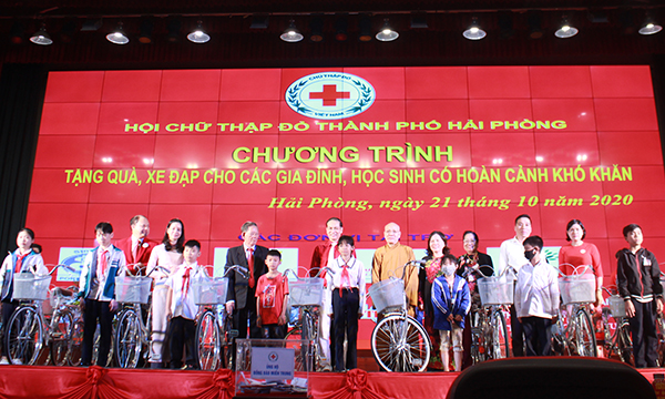 Các doanh nghiệp, cá nhân TP.Hải Phòng trao 50 suất quà (trị giá 1 triệu đồng và chăn ấm/suất) cho 50 gia đình có hoàn cảnh khó khăn. 90 xe đạp được các doanh nghiệp, doanh nhân trao tặng 90 học sinh tiểu học, THCS nghèo, vượt khó, tạo điều kiện để các em đến trường.