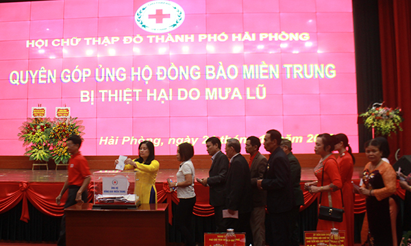 Bế mạc Hội nghị, bà Cao Thị Phượng, Chủ tịch Hội Chữ thập đỏ TP.Hải Phòng kêu gọi các doanh nghiệp, doanh nhân, hội viên, tình nguyện viên Chữ thập đỏ quyên góp, ủng hộ người dân miền Trung đang bị ảnh hưởng nặng nề do mưa bão. Kết quả: 26 đơn vị trong tỉnh tham gia quyên góp tại chỗ với số tiền 1 tỷ 742 triệu đồng. Cuộc vận động ủng hộ giúp đỡ người dân miền Trung khắc phục hậu quả mưa lũ tiếp tục được phát động tại cơ sở.