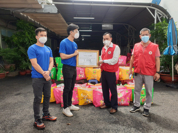 Ông Trần Trường Sơn – Chủ tịch Hội Chữ thập đỏ TP.Hồ Chí Minh tiếp nhận hàng hóa từ đơn vị tài trợ