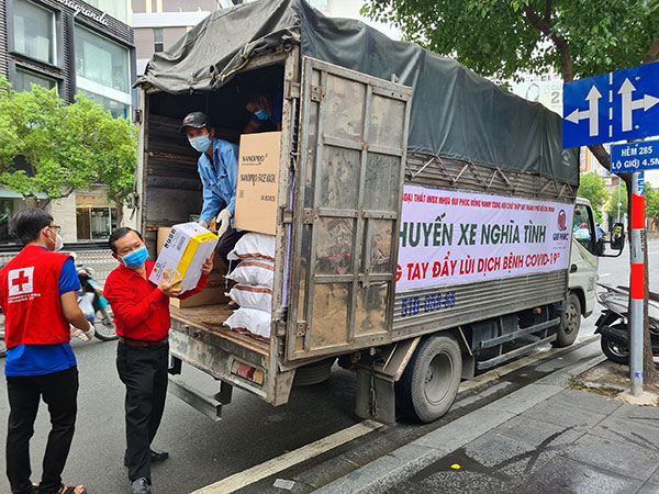 Hội Chữ thập đỏ quận 4 tiếp nhận hàng hóa hỗ trợ để phân bổ cho người dân khó khăn.