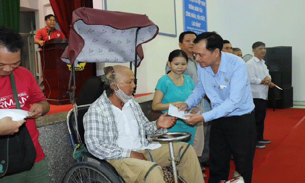 Ông Trần Trường Sơn – Chủ tịch Hội Chữ thập đỏ TP.Hồ Chí Minh trao quà cho người khuyết tật tại quận Bình Tân