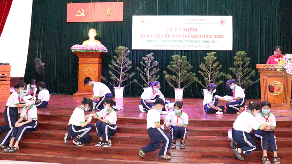 Triển khai thực hiện Nghị quyết Đại hội đại biểu Hội Chữ thập đỏ Việt Nam lần thứ XI nhiệm kỳ 2022-2027 về chỉ tiêu “Mỗi Hội Chữ thập đỏ tỉnh, thành thành lập 1 Đội sơ cấp cứu Chữ thập đỏ và Phòng ngừa, ứng phó thảm họa”. Tại chương trình, Ban Thường vụ Hội Chữ thập đỏ Thành phố Hồ Chí Minh đã thành lập và ra mắt “Đội sơ cấp cứu Chữ thập đỏ và Phòng ngừa, ứng phó thảm họa lưu động cấp Thành phố”, “Đội sơ cấp cứu Chữ thập đỏ và Phòng ngừa, ứng phó thảm họa lưu động Quận 8”, đồng thời thực hiện thao diễn kỹ năng sơ cấp cấp cứu của giáo viên và học sinh.