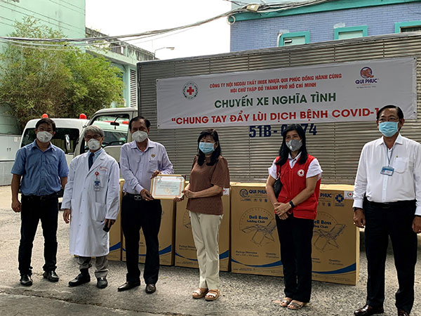 Ông Trần Trường Sơn – Chủ tịch Hội Chữ thập đỏ TP. Hồ Chí Minh trao thư cảm ơn đến các nhà tài trợ
