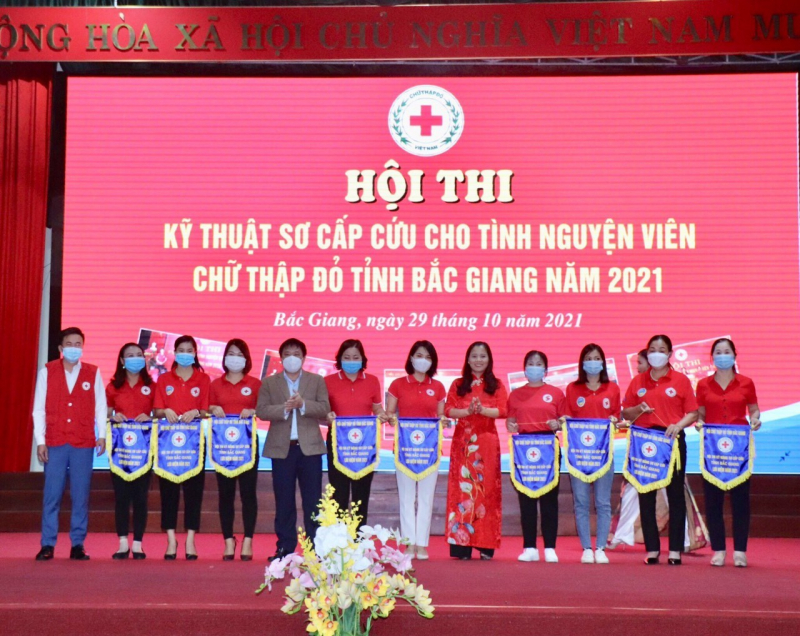 Hội Chữ thập đỏ tỉnh Bắc Giang thường xuyên tổ chức hội thi kỹ thuật sơ cấp cứu cho tình nguyện viên.