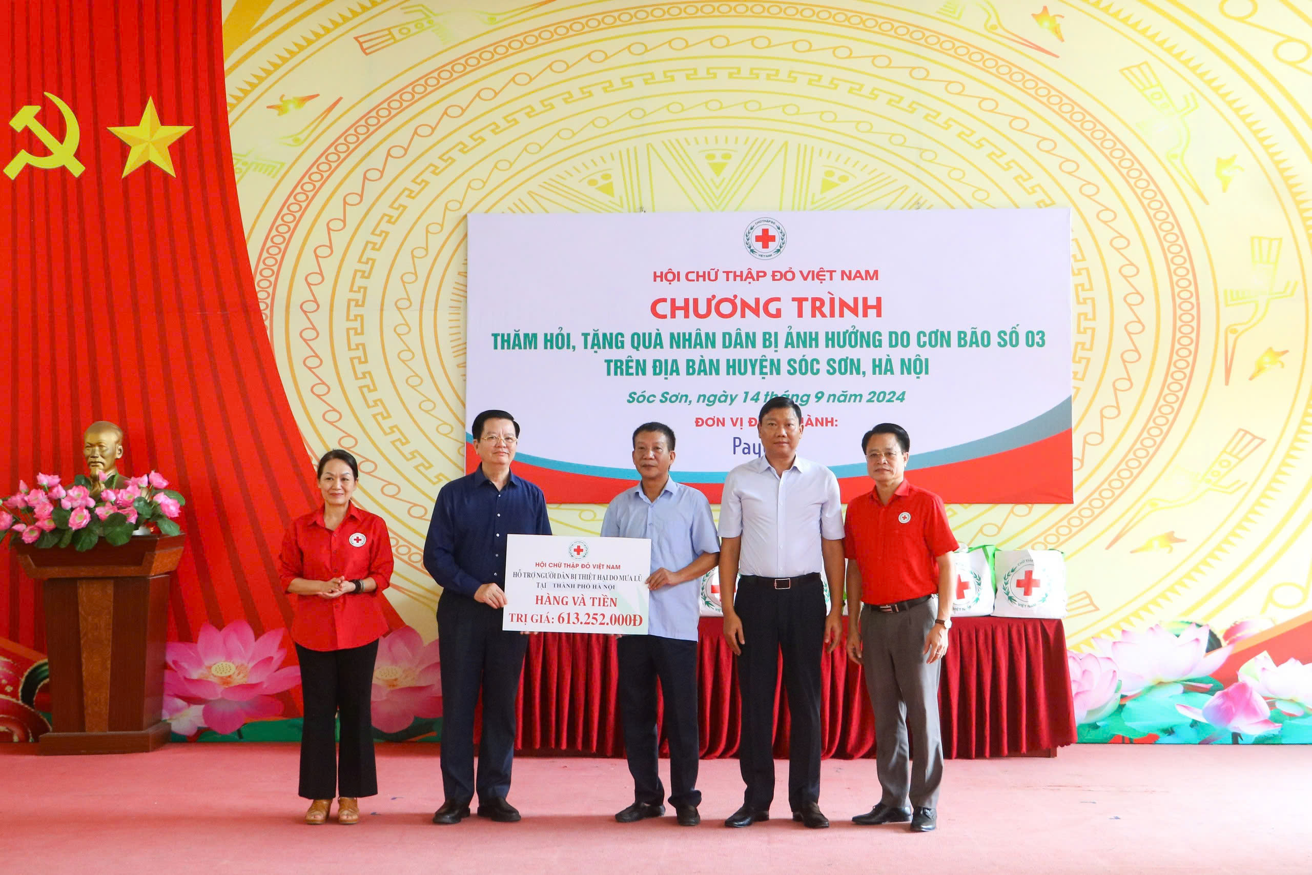 Dịp này, để hỗ trợ người dân trên địa bàn TP. Hà Nội chịu thiệt hại do cơn bão số 3 gây ra, Trung ương Hội Chữ thập đỏ Việt Nam đã trao cho Hội Chữ thập đỏ TP. Hà Nội hỗ trợ tiền, hàng hóa, nhu yếu phẩm, tổng trị giá 613 triệu đồng để