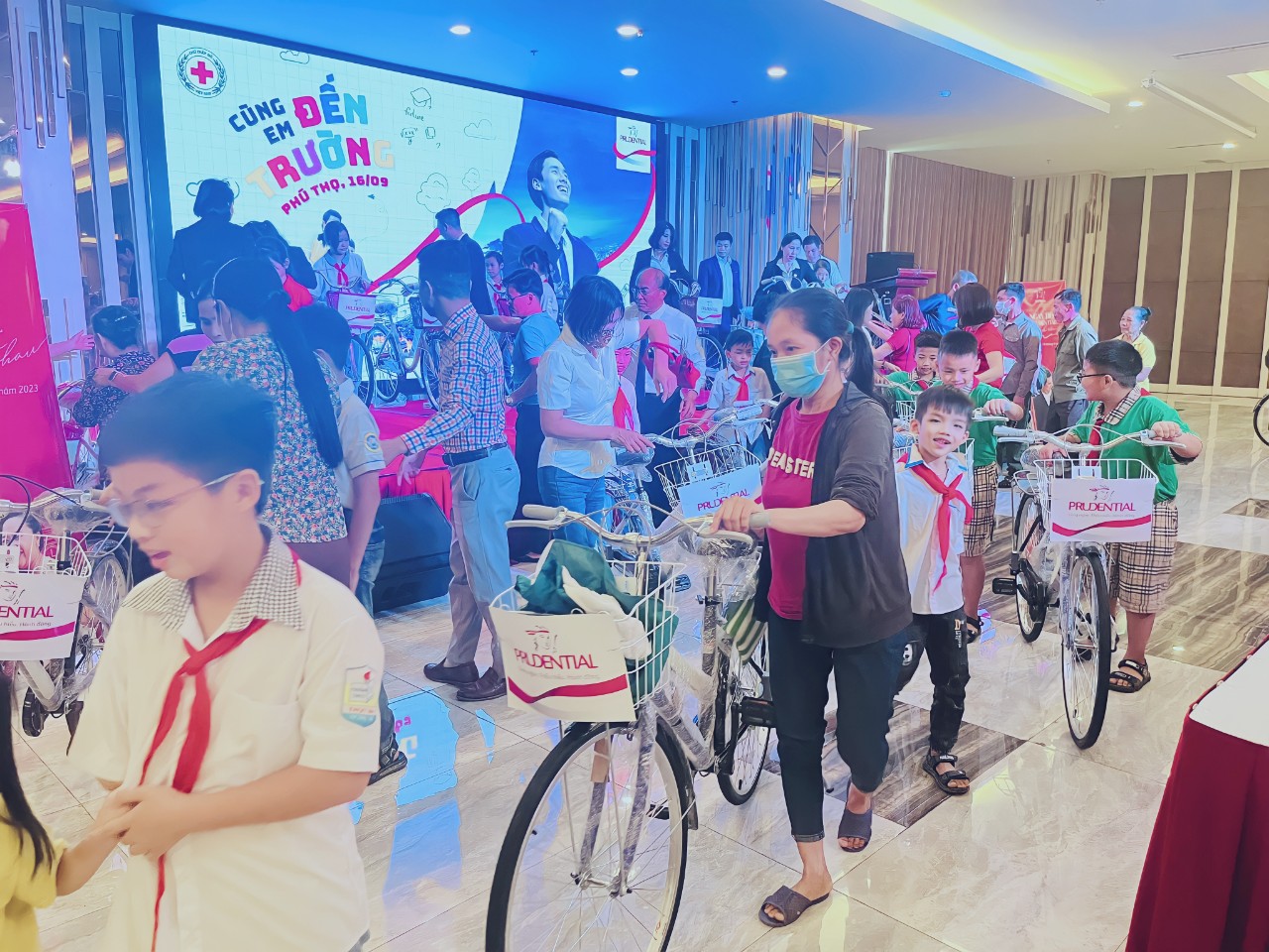Sáng ngày 16/9, Hội Chữ thập đỏ tỉnh Phú Thọ phối hợp cùng Công ty TNHH Bảo hiểm Nhân thọ Prudential tổ chức Chương trình “Cùng em đến trường” năm 2023, trao tặng xe đạp cho học sinh nghèo vượt khó tại thành phố Việt Trì, tỉnh Phú Thọ.