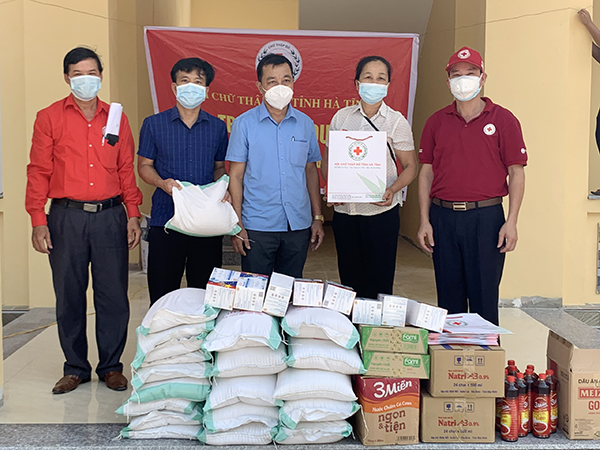 Vừa qua, 500 suất quà được Hội Chữ thập đỏ Việt Nam hỗ trợ thông qua Hội Chữ thập đỏ Hà Tĩnh đã được phân bổ về các địa phương, cụ thể: TP Hà Tĩnh 200 suất; Thạch Hà, Hồng Lĩnh, Lộc Hà (mỗi huyện 50 suất); Nghi Xuân 70 suất; Hương Sơn 80 suất. Mỗi suất quà gồm nhu yếu phẩm thiết yếu như: Gạo, nước mắm, bột nêm, sữa, dầu ăn, khẩu trang y tế, nước muối (trị giá 400.000 đồng/suất). Đặc biệt, trong bối cảnh dịch đang diễn biến phức tạp, nhiều khu vực giãn cách, Hội Chữ thập đỏ tỉnh đã phân bổ quà về cho các địa phương và tổ chức trao cho đại diện cho các trưởng thôn, tổ trưởng tổ dân phố để phát trực tiếp cho các hộ dân.
