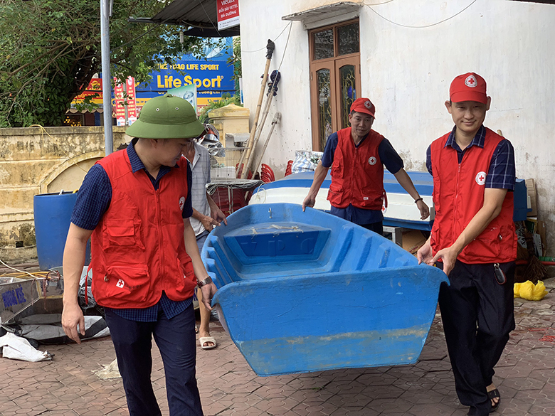 Hội Chữ thập đỏ tỉnh Hà Tĩnh chuẩn bị thuyền máy chủ động sẵn sàng ứng phó với diễn biến phức tạp của bão Noru. Ảnh: CTĐ Hà Tĩnh