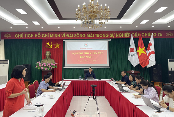 Báo cáo tại cuộc họp, ông Trần Sỹ Pha – Trưởng ban Công tác xã hội – Quản lý thảm họa, Trung ương Hội Chữ thập đỏ Việt Nam cho biết: Trung ương Hội Chữ thập đỏ Việt Nam hiện có 1 đội Ứng phó thảm họa (NDRT); 37 đội ứng phó thảm họa cấp tỉnh (PDRT) được củng cố, kiện toàn (trong đó có 9 đội phối hợp với sự tham gia của một số thành viên đến từ Ban Chỉ huy phòng chống thiên tai và tìm kiếm cứu nạn); duy trì 671 đội ứng phó thảm họa cấp cộng đồng (CDRT) với 14.000 thành viên. Hàng hóa dự trữ tại Trung ương Hội gồm 4.900 thùng hàng gia đình, hơn 2.000 bộ dụng cụ sửa nhà, 1.600 tấm bạt, máy lọc nước, bột lọc nước, bình lọc nước, nhà bạt…