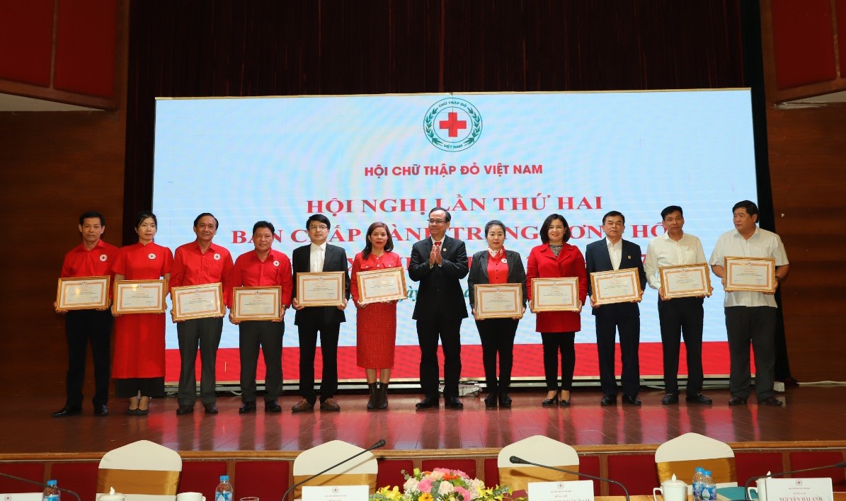 Tặng Bằng khen của Ban Chấp hành Trung ương Hội cho 20 đơn vị đạt thành tích xuất sắc trong công tác Hội và phong trào Chữ thập đỏ năm 2022: Hải Phòng, Đà Nẵng, Hải Dương, Hưng Yên, Nam Định, Ninh Bình, Điện Biên, Lai Châu, Bắc Giang, Thái Nguyên, Yên Bái, Thanh Hóa, Phú Yên, Đăk Lak, Khánh Hòa, Đồng Nai, Tiền Giang, Sóc Trăng, Bạc Liêu, Kiên Giang.