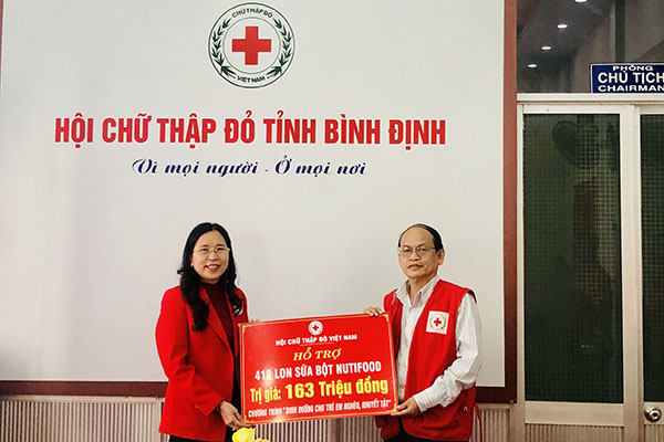 Nhân dịp này, Trung ương Hội Chữ thập đỏ Việt Nam đã tặng cho Hội Chữ thập đỏ tỉnh Bình Định 412 lon sữa bột Nuitifood với tổng trị giá 163 triệu đồng.