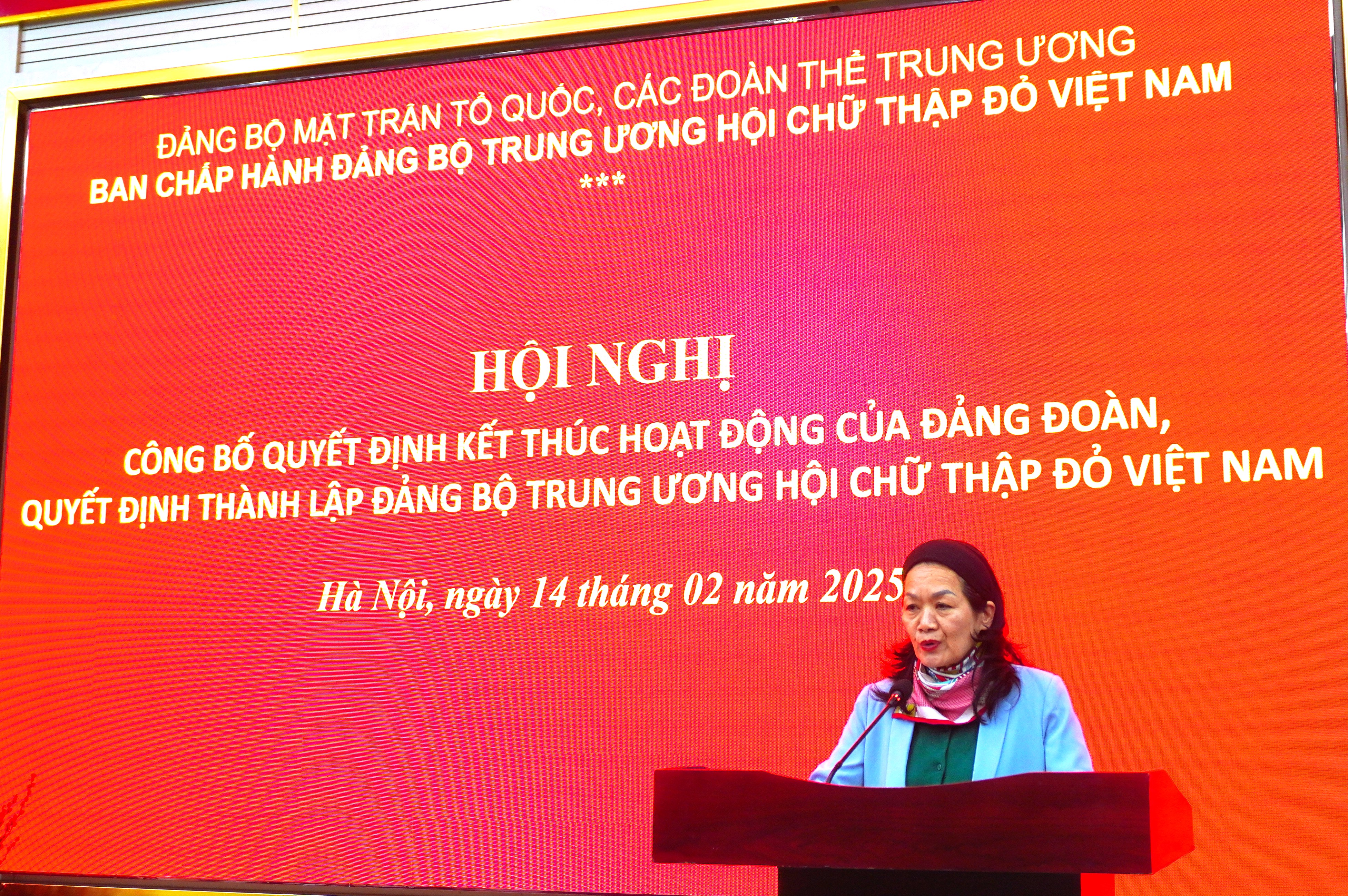 Bà Phạm Thị Hà Chiên, Ủy viên Ban Thường vụ Đảng ủy, Trưởng Ban Tổ chức – Kiểm tra TW Hội công bố các quyết định: Quyết định kết thúc hoạt động của Đảng đoàn Hội Chữ thập đỏ Việt Nam; Quyết định thành lập Đảng bộ Trung ương Hội Chữ thập đỏ Việt Nam; Quyết định chức năng, nhiệm vụ, tổ chức bộ máy của Đảng ủy Trung ương Hội Chữ thập đỏ Việt Nam; Quyết định chỉ định nhân sự BCH, Ban Thường vụ, Thường trực Đảng ủy.