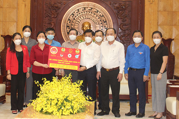 trao quà và tiền ủng hộ phòng, chống Covid – 19 tại tỉnh Bắc Giang.