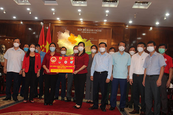 Nhân dịp này, Trưởng ban Ban Dân vận Trung ương và đoàn công tác trao tặng cho lực lượng chống dịch tỉnh Bắc Ninh số tiền mặt và hàng hóa trị giá 5,268 tỷ đồng (trong đó: Hội Liên hiệp Phụ nữ Việt Nam ủng hộ cán bộ, hội viên, phụ nữ tỉnh Bắc Ninh số quà tặng giá trị trên 1,7 tỷ đồng. Hội Chữ thập đỏ Việt Nam trao tặng lực lượng phòng, chống dịch Covid -19 tỉnh Bắc Ninh số quà trị giá hơn 1,5 tỷ đồng).